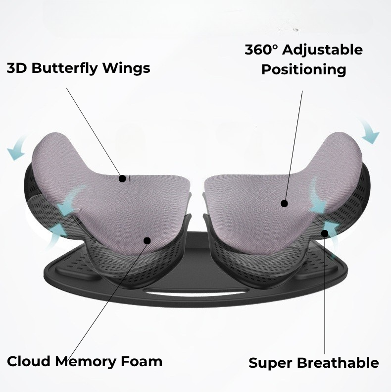 Advanced ergonomic lumbar cushion with 3D butterfly design for superior back pain relief. Adjustable support technology adapts to your spine while improving posture during long office hours.